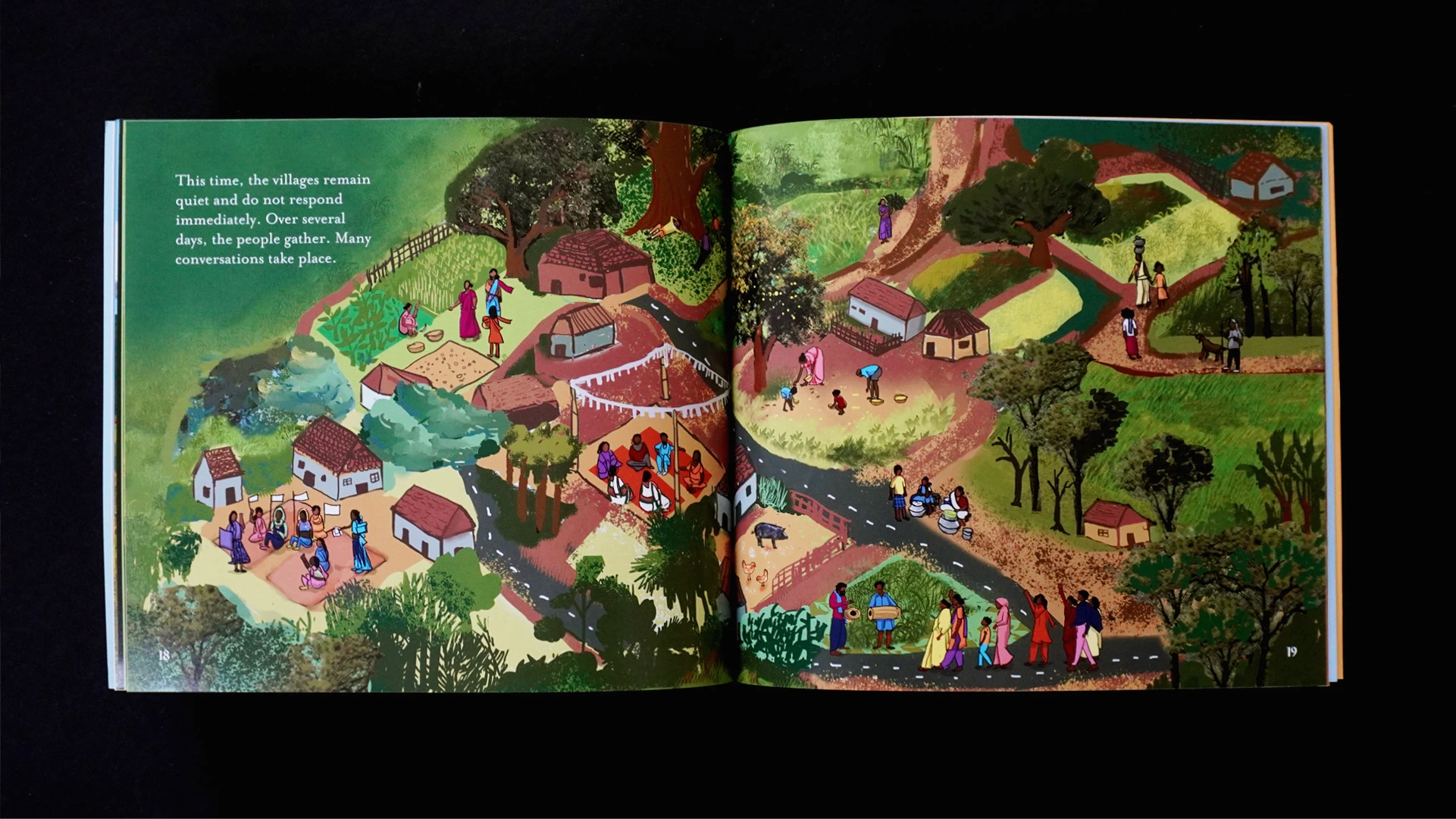 Art directed by Sandhya Visvanathan, this book uses a painterly mixed-media approach to the illustration style, using photographs from the author as a reference. We designed the characters of Jinid’s grandmother based on the village elders who shared their knowledge with Anumeha during her stay there.